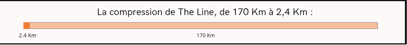 Velard, L. (2025, novembre) La compression de The Line, de 170 Km à 2,4 Km [illustration]